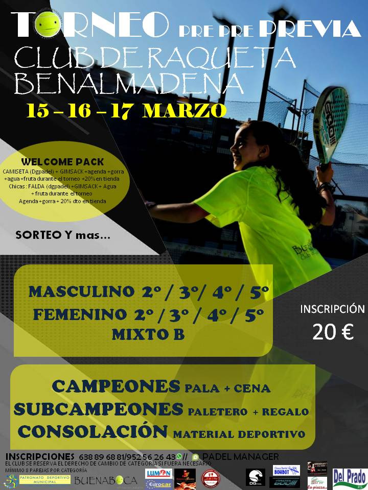 toreno de padel PRE PRE PREVIA 5/6 y 7 abril