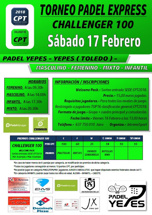 YEPES - CHALLENGER100 - TORNEO EXPRESS max 8 PAREJAS